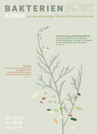 Seit 2022 bringt der gemeinnützige Verein “EM-Bakterienfreunde” die beliebte BakterienPost heraus. Wie vorher auch schon, schreibt der Gründer der Eußenheimer Manufaktur und des Vereins, Jürgen Amthor, vier Mal im Jahr über Gesundheitsthemen, regenerative Landwirtschaft, Gartenthemen und vieles mehr. Natürlich immer mit dabei, unsere kleinen Helfer – die Effektiven Mikroorganismen.
