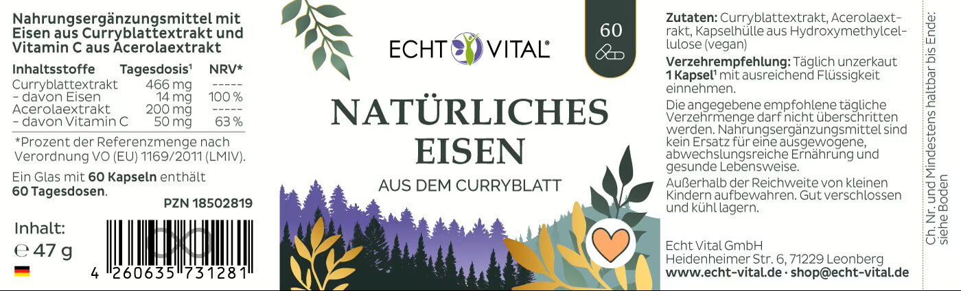 Schreibe die erste Bewertung für “Natürliches Eisen aus dem Curryblatt, 60 Kapseln, Echt Vital”