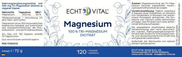 • Enthält 500 mg Tri-Magnesium Dicitrat pro Kapsel