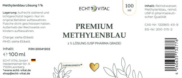 Echt Vital Methylenblau wird in einem sorgfältigen Verfahren in Deutschland hergestellt – mit höchstem Anspruch an Reinheit, Stabilität und Qualität. Verwendet wird ausschließlich Methylenblauhydrat in USP-Qualität, gelöst in 99 % gereinigtem Wasser.