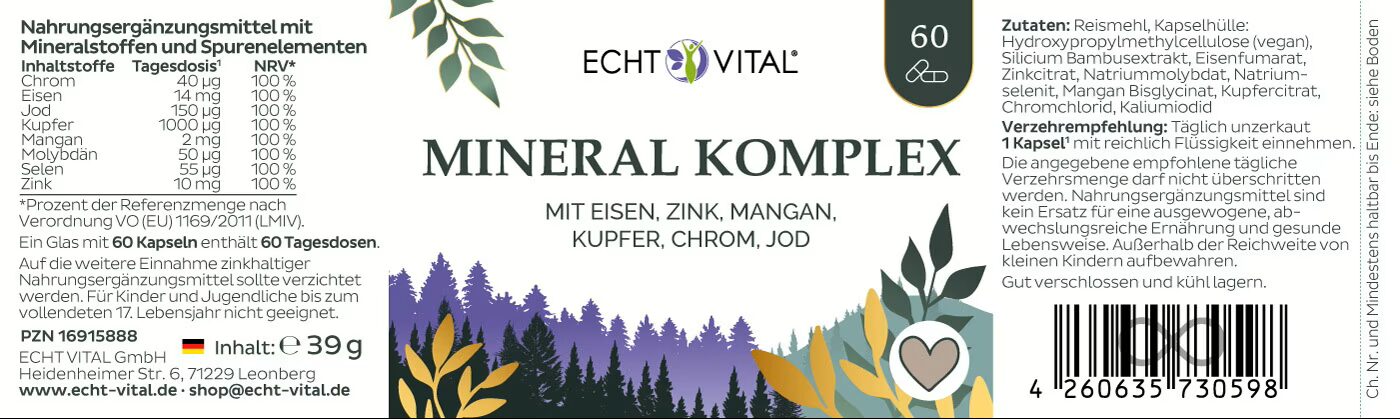 Reismehl, Silicium Bambusextrakt, Eisenfumarat, Zinkcitrat, Natriummolybdat, Natriumselenit, Kupfercitrat, Mangan Bisglycinat, Chromchlorid, Kaliumiodid, Kapselhülle: Hydroxypropylmethylcellulose (vegan)