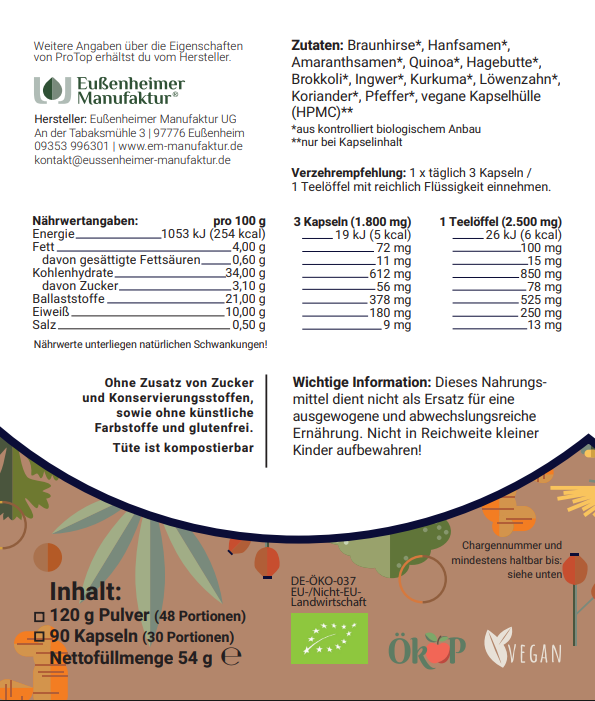 | Nährwertangaben | pro 100 g | 3 Kapseln (1,8 g) |