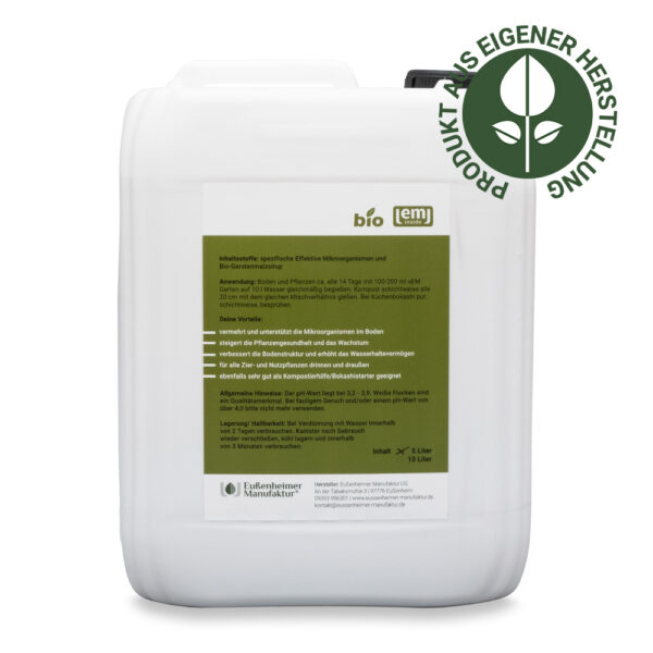 Unser sEM Garten ist eine biologische Bakterienlösung zur nachhaltigen Pflege von Garten-, Topf- und Zimmerpflanzen. Die enthaltenen Effektiven Mikroorganismen (EM) fördern aktiv ein gesundes Bodenleben und unterstützen die Pflanzengesundheit auf natürliche Weise.